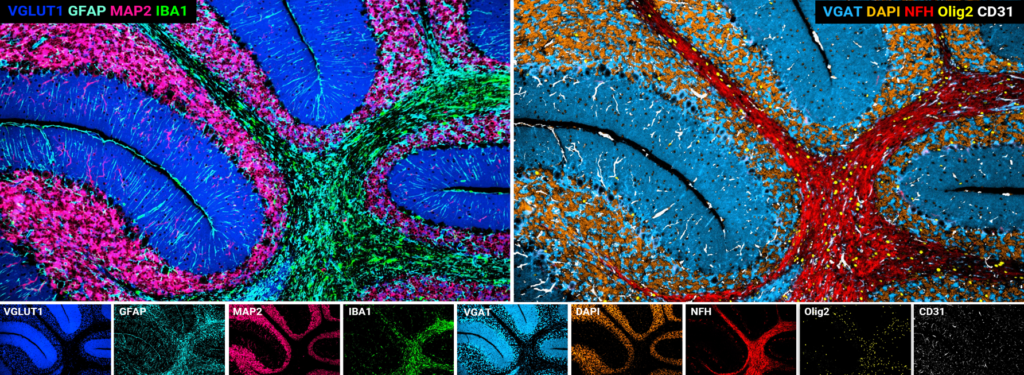 The staining protocol does not require heat treatment such as boiling between cycles, and is ideal for direct labeling of primary antibodies for higher degrees of multiplexing compared to working with secondary antibodies. Compatible with FFPE and frozen tissue sections, and fixed cells.